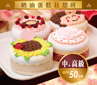 蛋糕毛巾達人嚴選素材,讓您 DIY 創意裝扮您專屬的 6吋奶油蛋糕毛巾。(每項 NT.450 約 60分鐘)