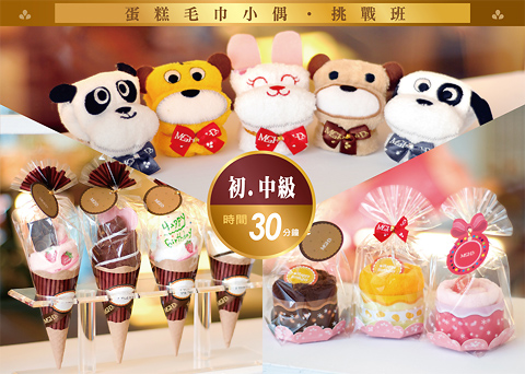 定期精選可口可愛的小蛋糕及毛巾小偶,進行 DIY 毛巾教學。(每項 NT.150 約 30分鐘)